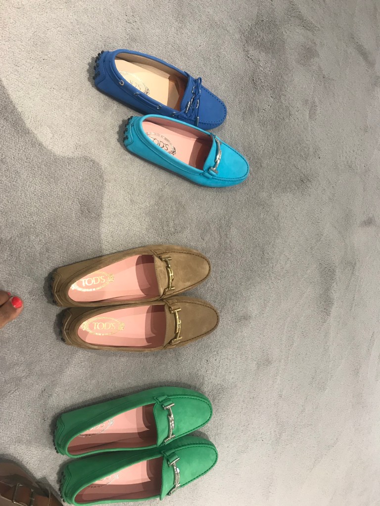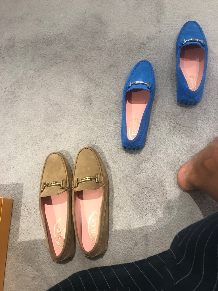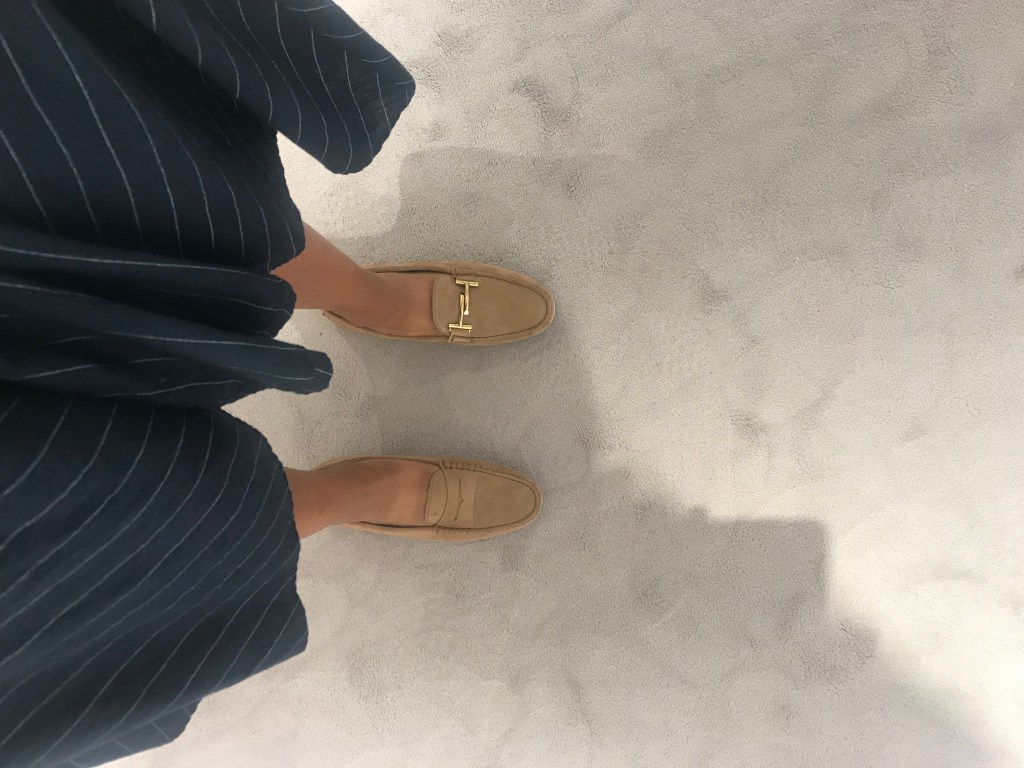 Essential Item 2: Flat shoes, preferable loafers, preferably not suede Tods, mine have not fared so well since I made the mistake of wearing them when the forecast said a 5% chance of rain that turned into 100% rain. Colours, navy, nude, yellow or red.