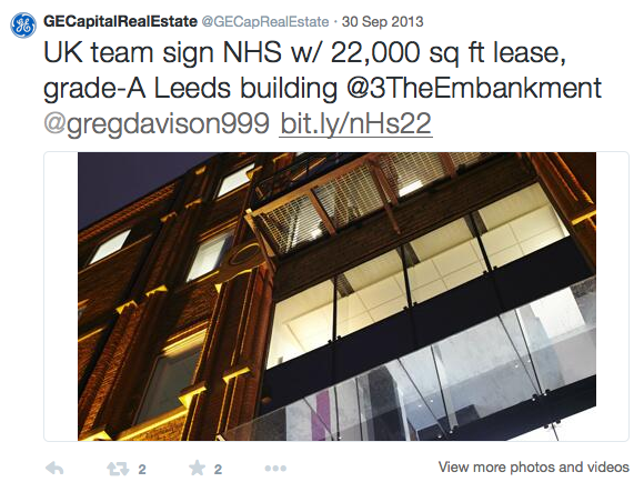 The brief was to develop a suite of marketing collateral to accurately and articulately represent the product and offering within budget to the target market. I selected an agency to partner with to develop my vision of creating a brochure that would resemble a photo album that details the history of the building , thereby resonating directly to the target market. A suite of carefully curated marketing collateral combined with a complimentary sales & marketing campaign resulted in a 70% increase in uptake of the building, thereby resulting in a net income gain of £1.2M per year. Below are some screen shots of the brochure and a related tweet of a lease completion.